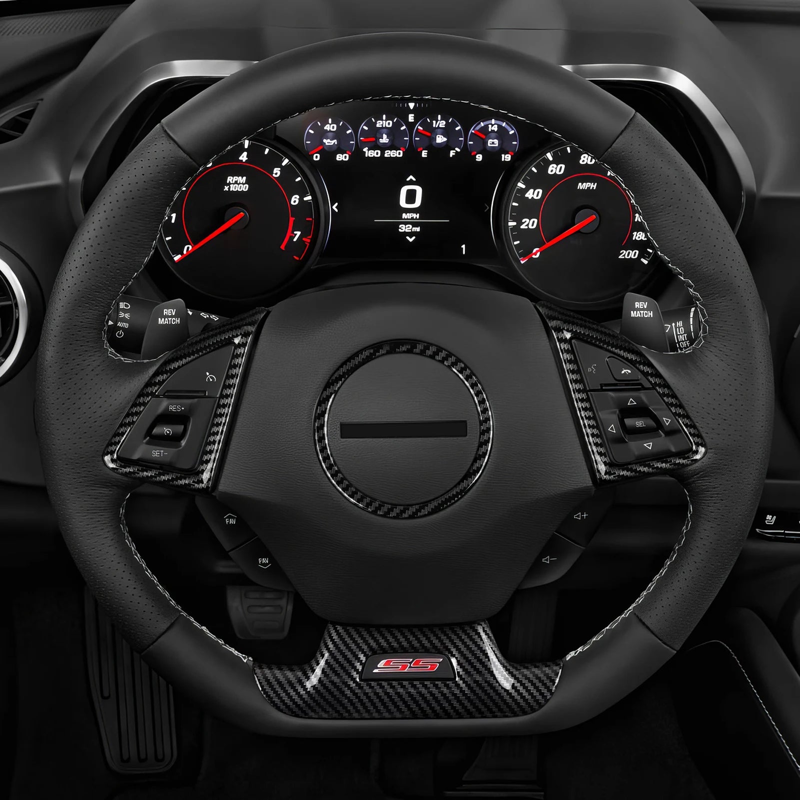 🏁 Carbon Fiber Style Steering Wheel Cover Trim for Chevrolet Camaro ZL1 (2016–2024)